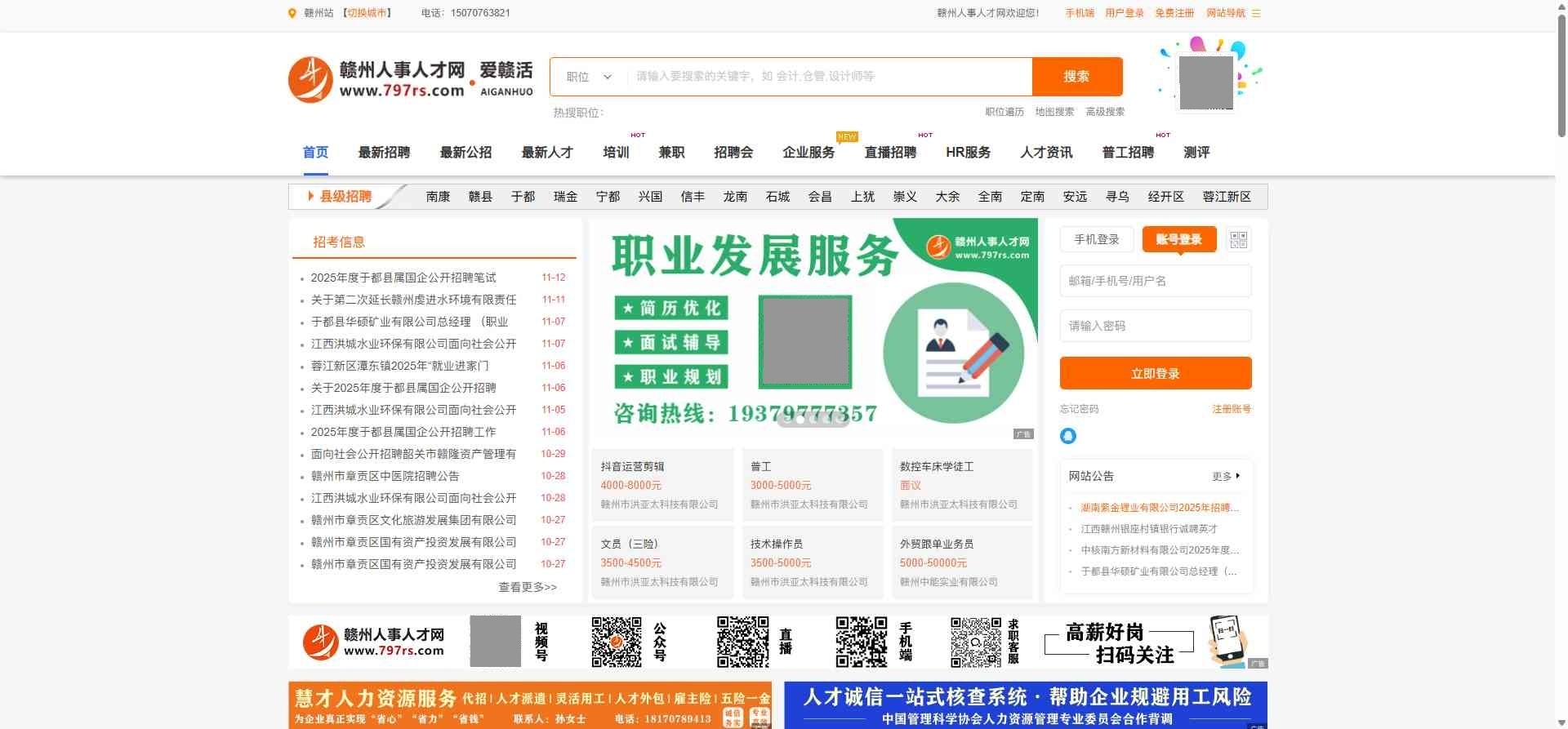 网页描述:赣州人事人才网,创办于2008年,是赣州市人才招聘服务知名品牌,提供包括现场招聘、网络招聘、报纸招聘、人才派遣、人才外包、灵活用工等人力资源综合业务等服务,赣州招聘首选赣州人事人才网。