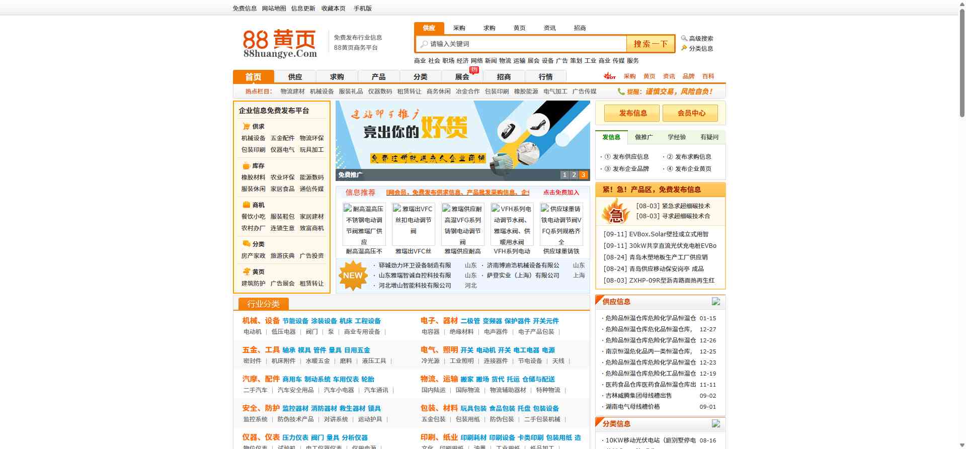 网页描述:88黄页网是全球最优秀的B2B电子商务平台,免费供求信息网,提供最新免费发布的企业黄页信息、供应信息,找客户、找求购尽在88黄页网b2b平台,免费发布信息首选88黄页网B2B电子商务网站!
