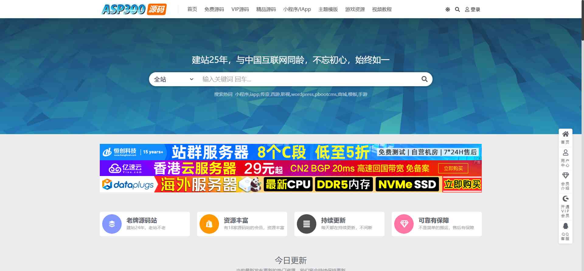 网页描述:ASP300源码是国内老牌源码下载站,持续分享网站源码、游戏源码、小程序源码、app源码、各类主题模板及视频教程等资源。