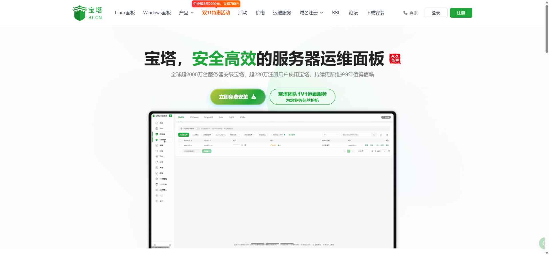 网页标题:宝塔面板(bt.cn) 简单好用的Linux/Windows服务器运维管理面板