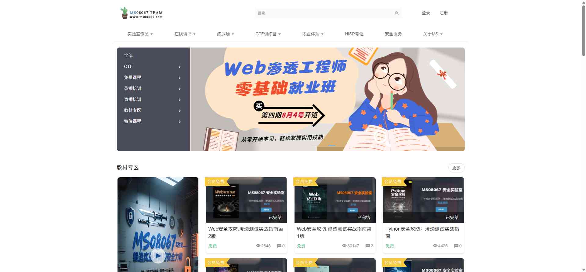 网页标题:Ms08067安全实验室 - 专注于网络安全领域教育、培训、安全竞赛及安全服务~ - Powered By EduSoho
