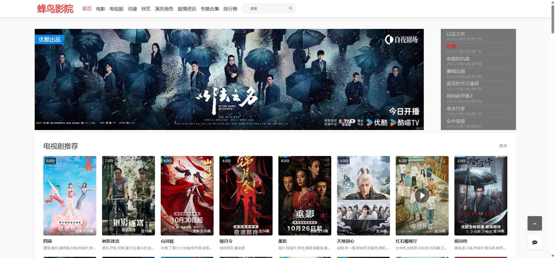 网页标题:蜂鸟影院首页,最新热门国产电视剧、美剧、韩国电影、动漫等高清大片免费在线观看