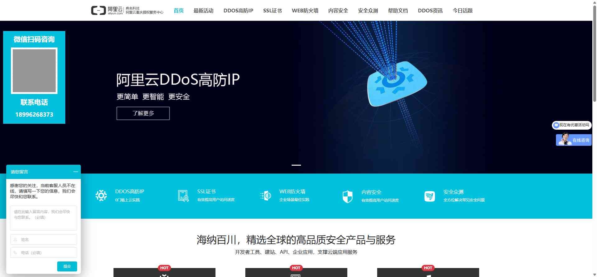 网页标题:典名云安全-DDOS高防-SSL证书-WEB防火墙-CDN-WAF_价格费用