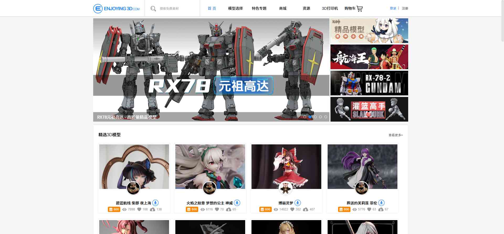网页描述:Enjoying3D是一个专注于3D打印模型素材资源共享下载和在线打印的平台,提供stl格式及obj格式3d模型,让每一个人都能感受3D打印的魅力,享受3D打印的乐趣,是Enjoying3D的初心。