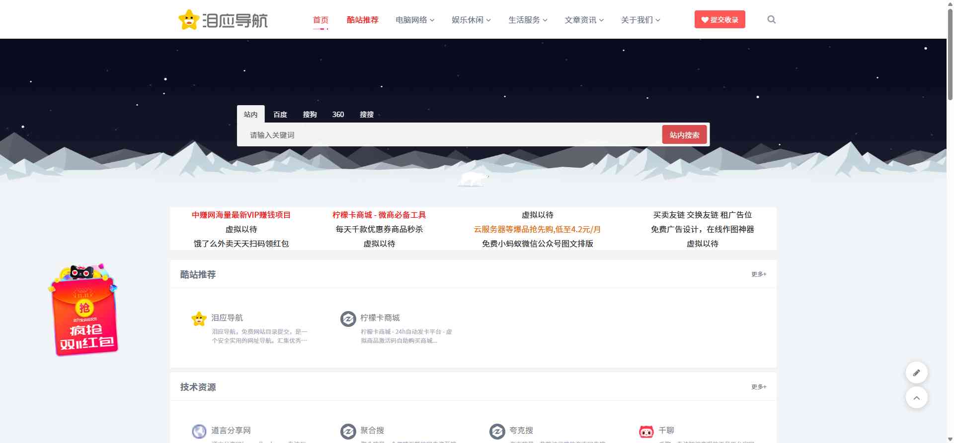 网页描述:泪应导航,免费网站目录提交,是一个安全实用的网址导航。汇集优秀的网站及资源,收录技术资源、网址导航、娱乐休闲、生活服务、电脑网络、行业门户、旅游健康等分类网站。